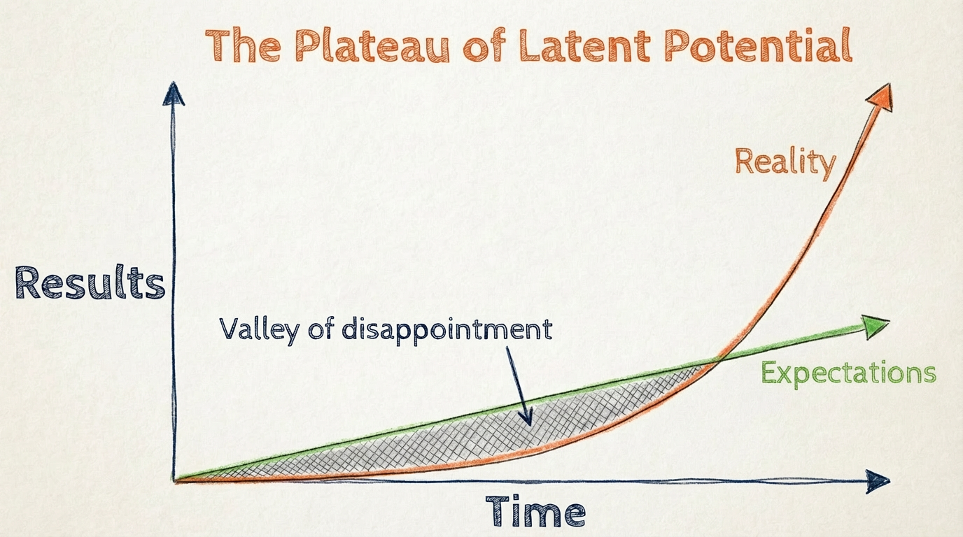 In Atomic Habits, James Clear describes a pattern that explains why so many meaningful efforts feel discouraging before they succeed. He calls it the Plateau of Latent Potential.