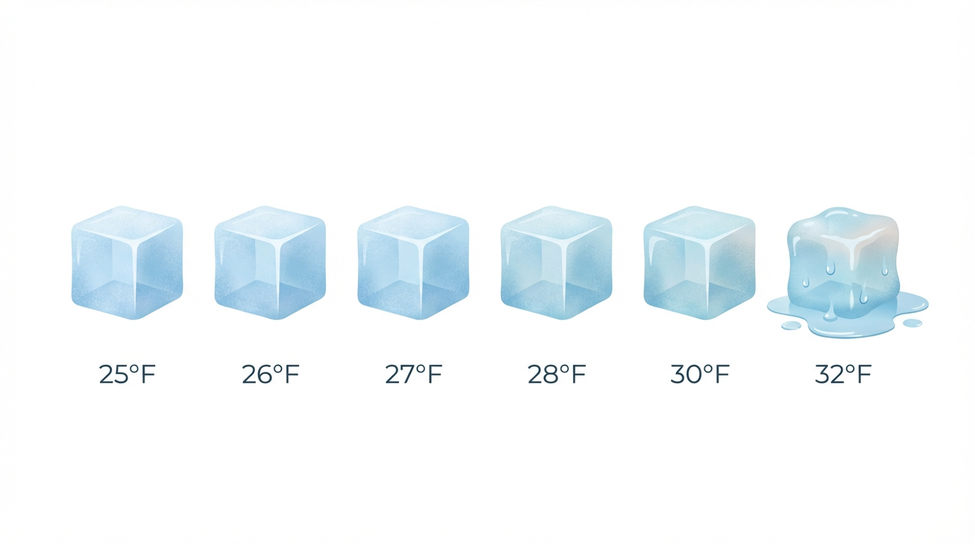 At 28°F, 29°F, 30°F — the ice cube looks exactly the same.